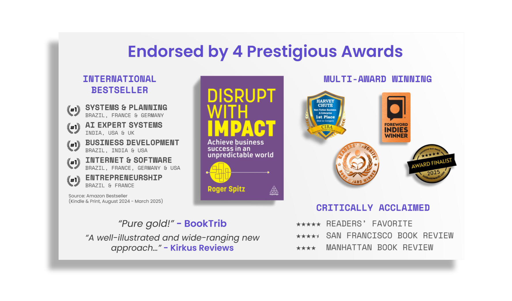 Award-Winning Author: Author of five bestselling books, Disrupt With Impact: Achieve Business Success in an Unpredictable World and the seminal four-volume collection The Definitive Guide to Thriving on Disruption.